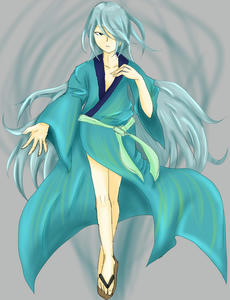 ついにやってしまった擬人化。青い… 刀に性別はありませんので無性です! 着物の柄と背景は、センスがなくて思いつきませんでした。 こうなると紅丸も描きたくなるなぁ…