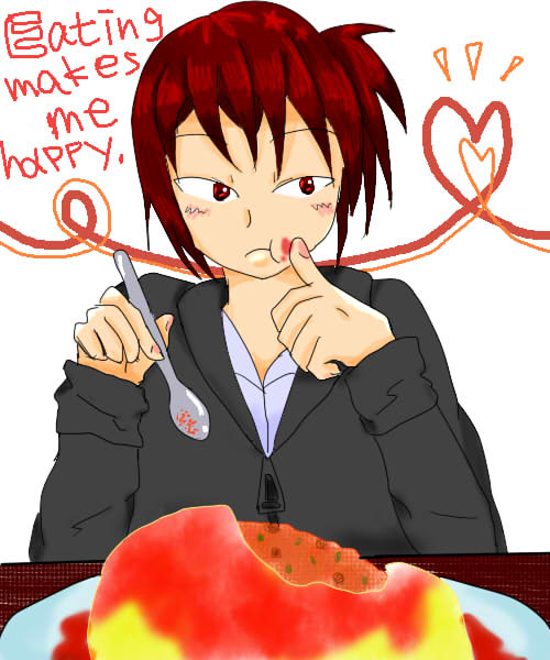オムライスです(言い張る) どんなにおいしくなさそうでも絶対にオムライスです! 血じゃなくてトマトケチャップ! あと背景は描けません!