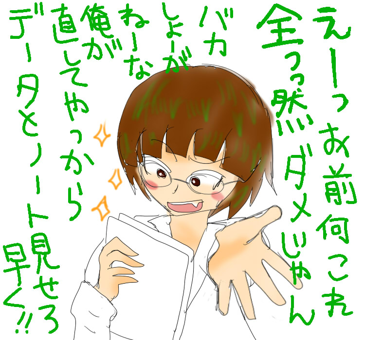 ローレンスが好きという友人が 「彼の元同僚で、逃げている彼を探している研究者キャラが居たら面白いのでは?」 とすてきなアイデアをくれました。 しかしこれ以上キャラを増やしても動かす機会がないので キャラデザインだけはしてみました。女医さんのようだ。 どなたか差し上げます。←