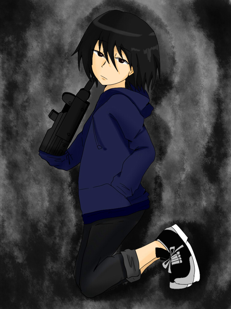 ブログのプロフ用に描いた永真。 黒すぎた。 現代で一番思い入れがあるキャラです。 当初はただの根暗コミュ障だったのですが、色んな方と関わるうちに、 少し丸くなった気がします。 悪役になりきれない悪役、というか アンチヒーロー的な位置が好きです。 東和兄弟(特に永真)はそんなコンセプトで作りました。 生い立ちからくる考え方や、人とのかかわり方が複雑な子なので めんどくさくて、動かしてて楽しいです(?) 銃器と腕の境目がどうなってるかは考えないでください。私だって知りたい。