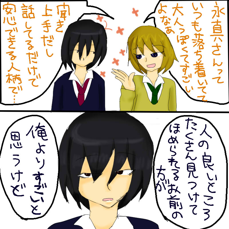 一刻「どうすれば奴は動揺するんだ!」 ちょっと長い。そして読みづらい。 千鶴の髪型がコマごとに違ってすみません。