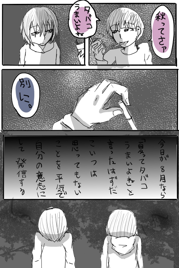 東和兄弟は普段は非喫煙者ですが、凄く嫌な事があった日にだけ、ベランダでセブンスターを吸うという話。一箱を共有してます。