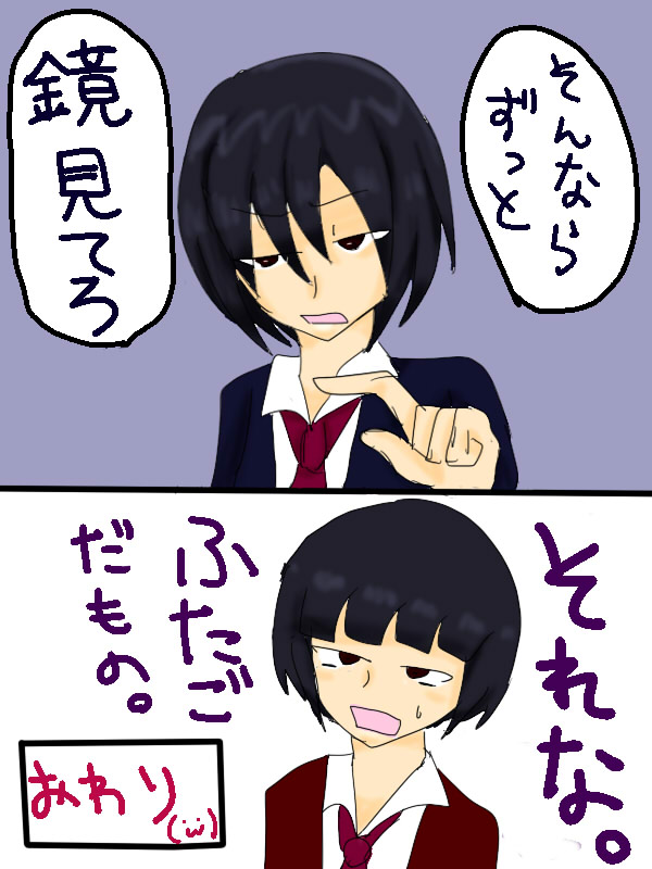 後日談的なのを絵にするのは楽しいのです。 ここ数日で一刻さんがモテない理由が分かったぞ! チャラくて胡散臭いからだ! なんてかわいそうで残念な奴だろう!(にっこり)