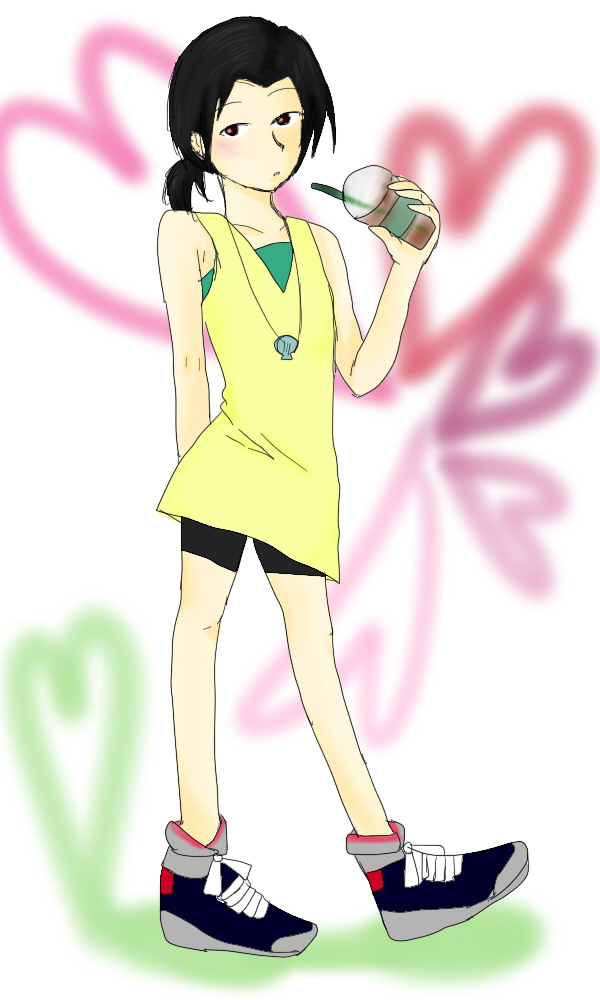丈の長いトップス+スパッツ+ごついスニーカーの組み合わせが好きです。 これなら希成も女の子に見える。 サイズミスって背景切れてる…